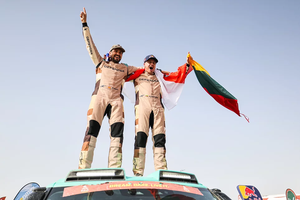 Dubai, UAE – Saturday 17 January 2026: Defender Rally have won the 2026 Dakar Rally, the toughest off-road challenge in the world, in their debut year, as drivers Rokas Baciuška and Oriol Vidal win the Stock class in the Defender Dakar D7X-R.